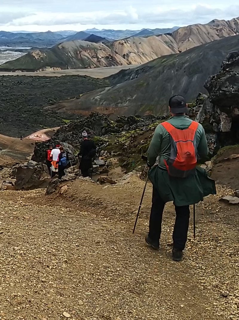 PERJANTAI | Päiväretki ikoniselle sinertävälle Bláhnúkur-vuorelle (945 m). Nousureitti paikoin jyrkkä ja kapea, mutta polku ylös ja alas koko matkalta erittäin hyvä. Paluumatkalla ylitetään vuonna 1477 tulivuorenpurkauksessa syntynyt musta obsidiaanilaavakenttä.