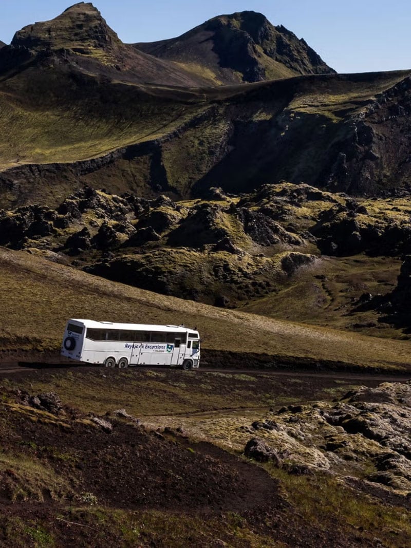 Islannin ylämailla jopa bussimatkat ovat osa seikkailua. Thorsmörkiin ja Landmannalaugariin pääsee vain maastokelpoisilla busseilla, jotka selviävät mutaisista teistä ja jokien ylittämisestä.