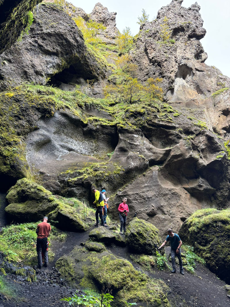 TIISTAI | Lyhyempi päiväretki Sönghellir-luolaan, Valahnukur-vuorelle ja vuorta ympäröiville laavakentille. Paluumatka alas Krossa-joen laaksoa pitkin.